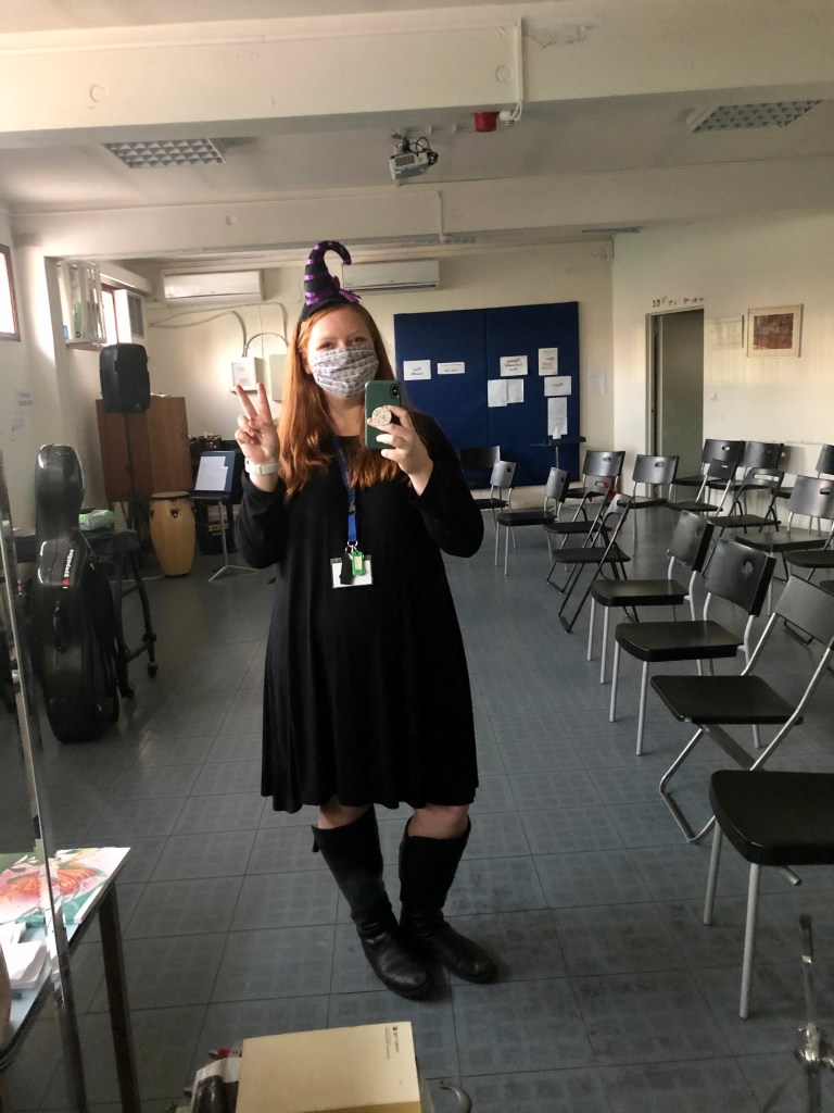 Dressed up for my first internationally celebrated Halloween (it was a big deal at our American school), and also experienced my first earthquake that same afternoon.