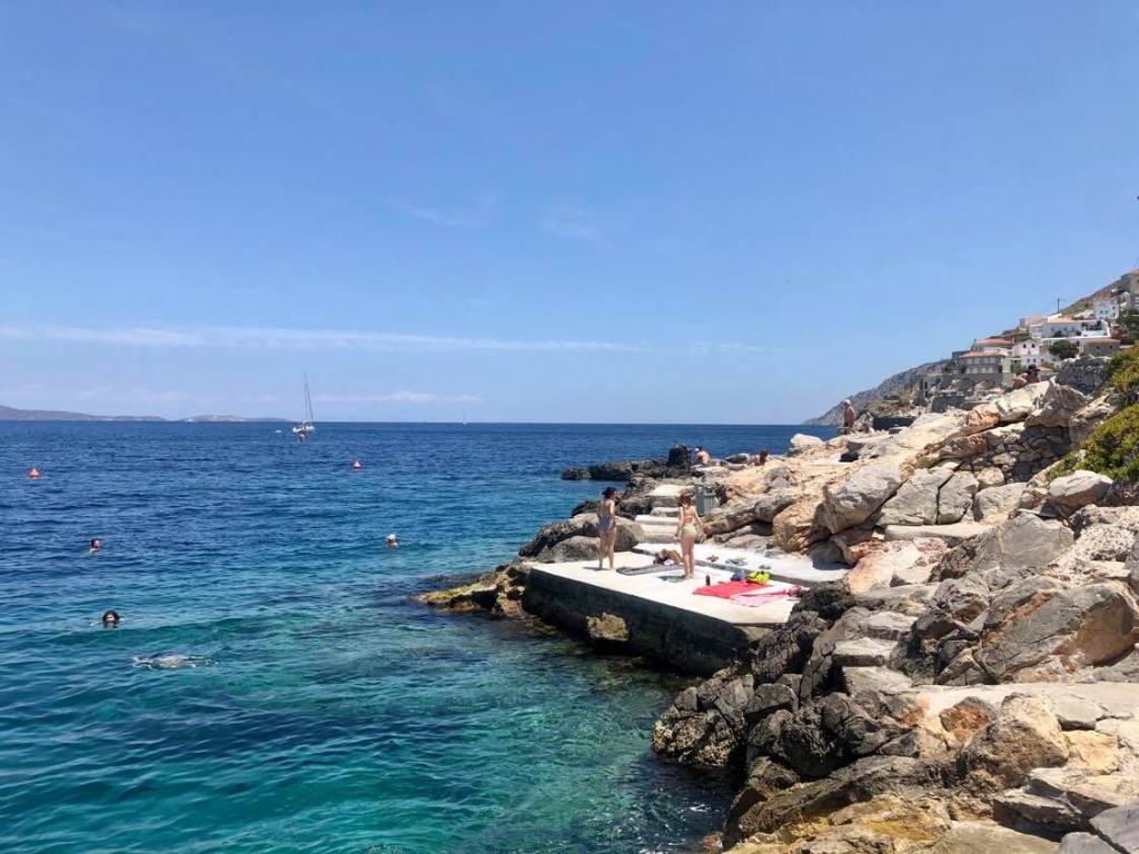 Hydra isn’t known for having sandy beaches, but rather rocky beaches, but that didn’t stop us! We searched for a good place to have a dip, and finally decided on a concrete rock structure to jump off of.